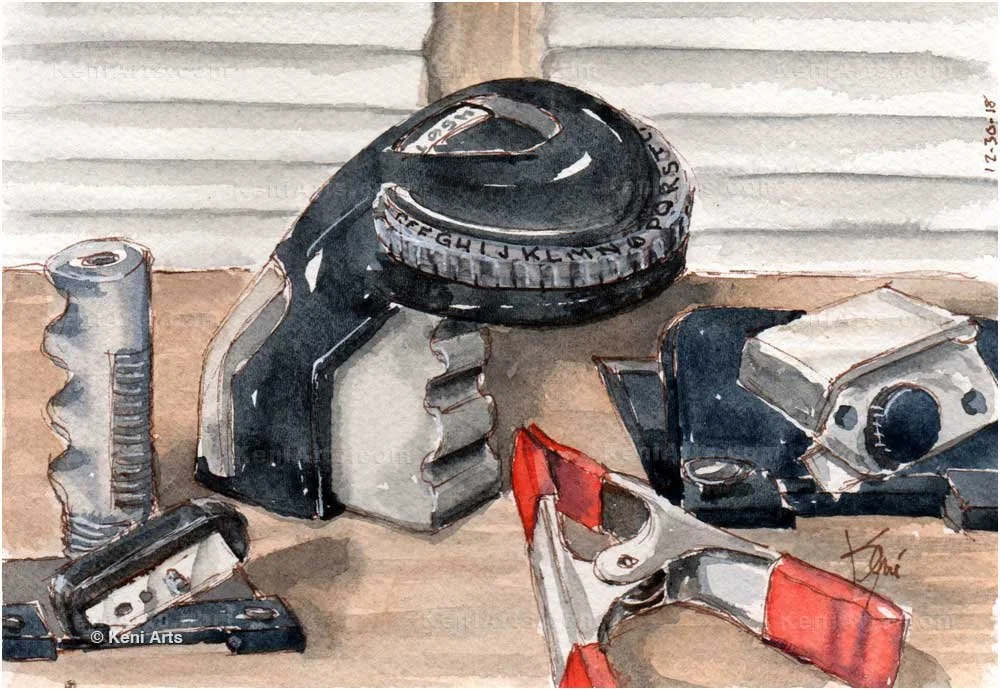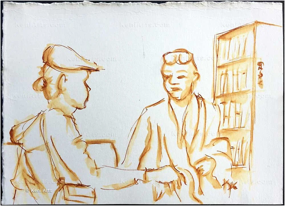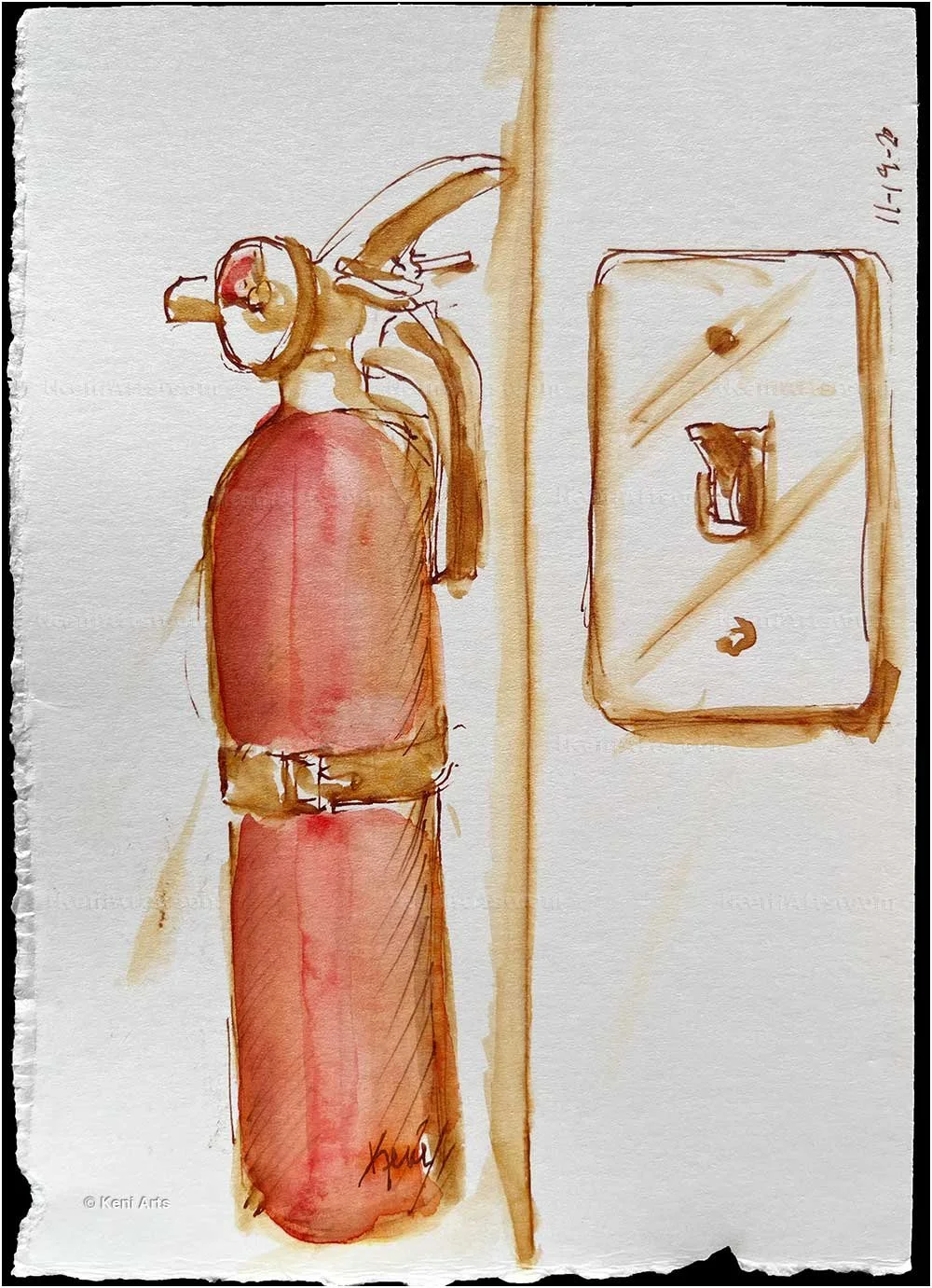 Coffee cup and saucer and sometimes tea. Pen and sepia ink wash.