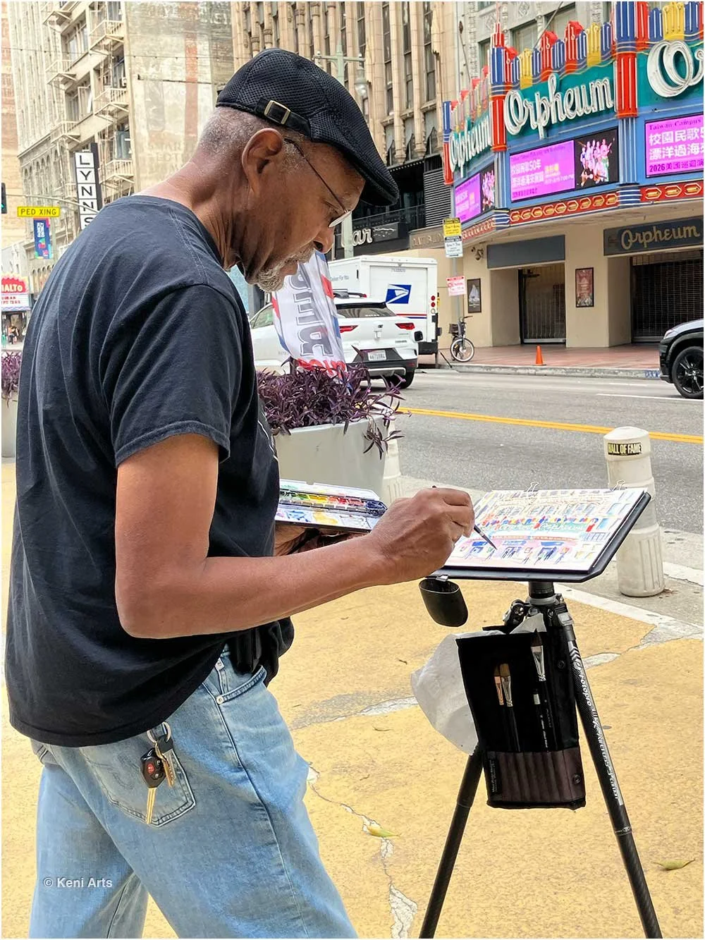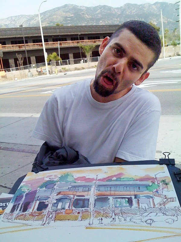 Showercap stopped traffic while belting out Broadway show tunes as I painted his portrait. Did I paid him? Absolutely!